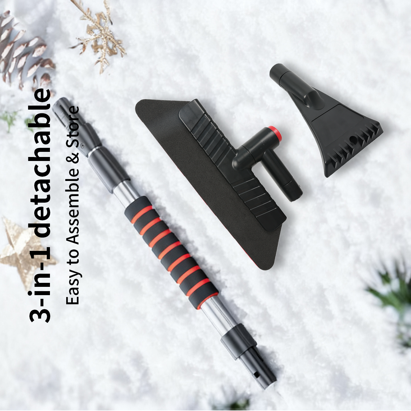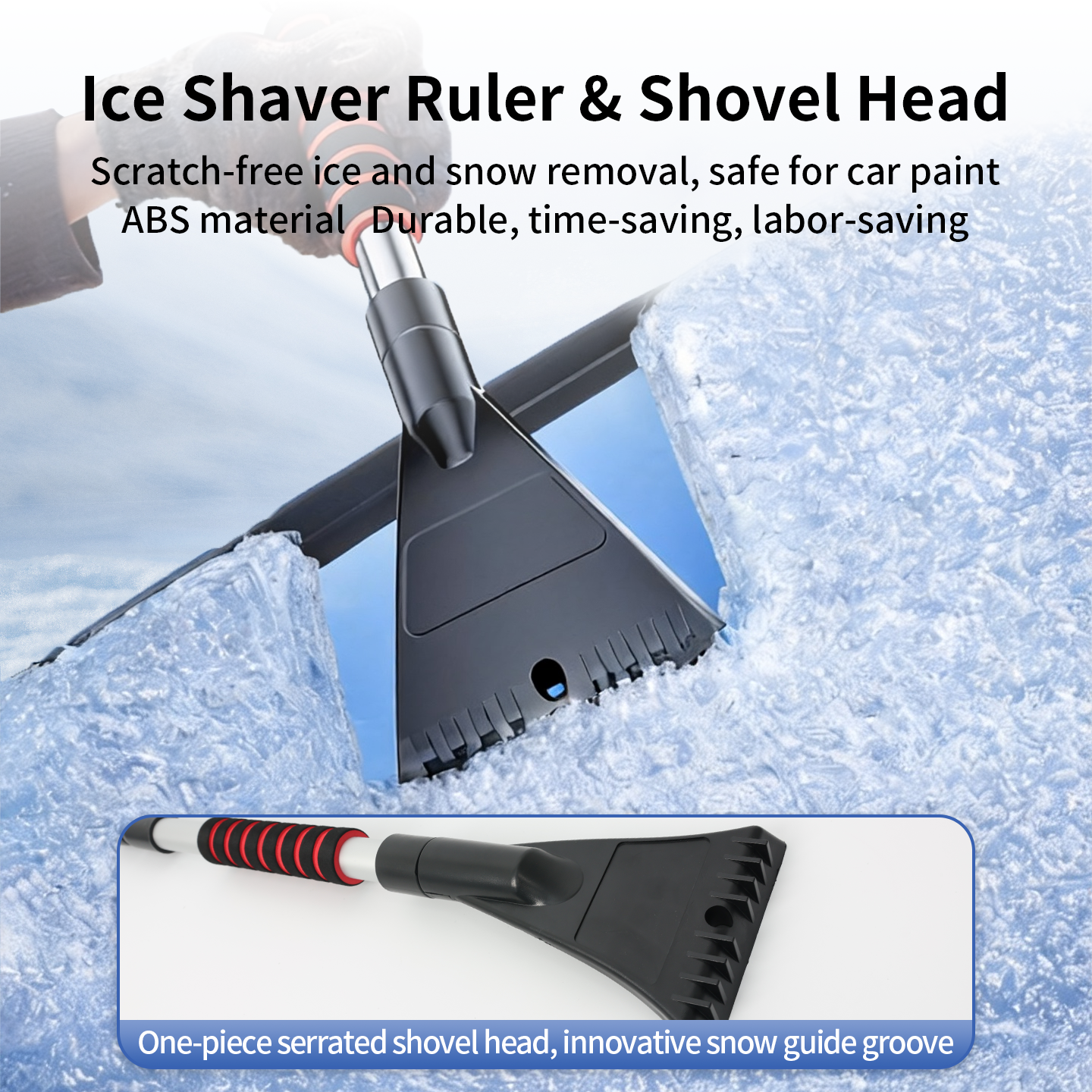 ● 雪刷头: 由高强度ABS塑料制成,PVC刷毛耐寒,不易断裂。