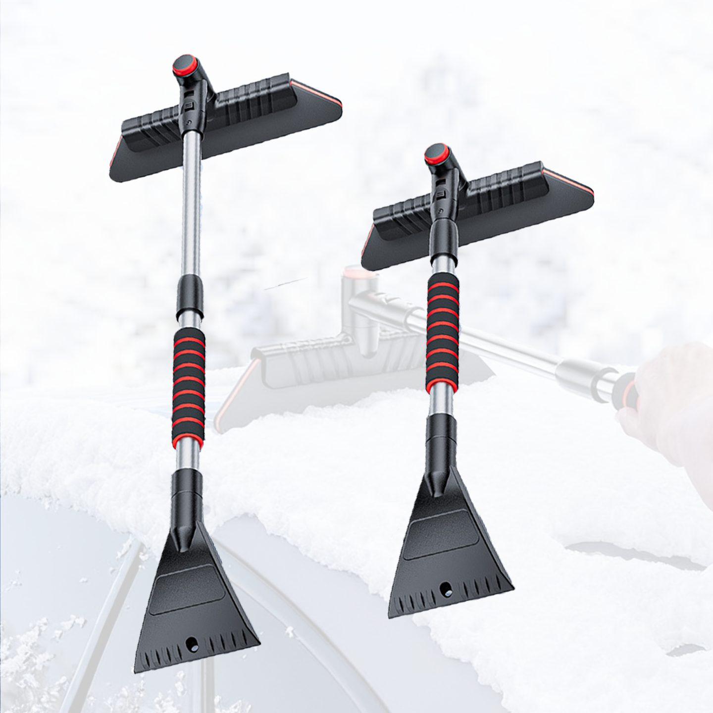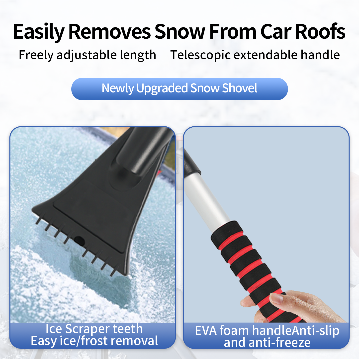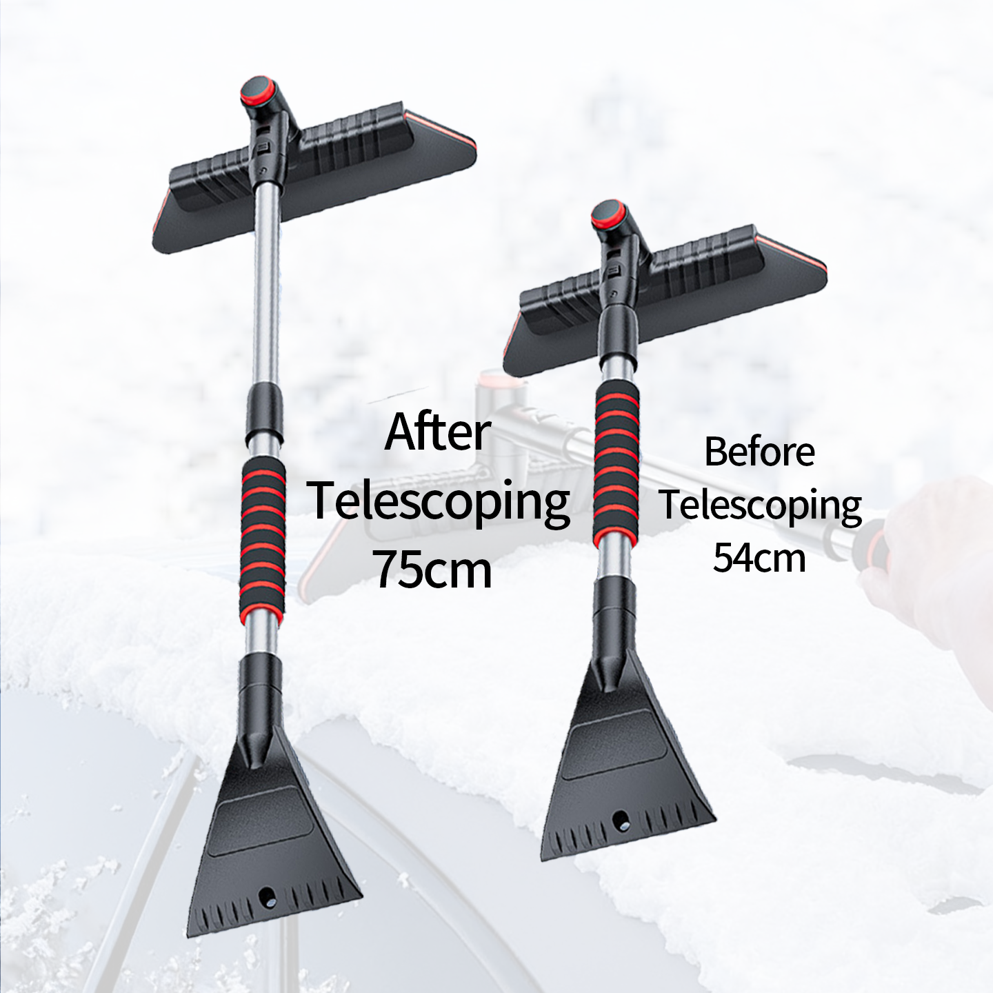 ● 用途广泛: 适用于清除汽车、电动踏板车、自行车以及积雪覆盖的房屋的积雪和霜,玻璃窗和门。