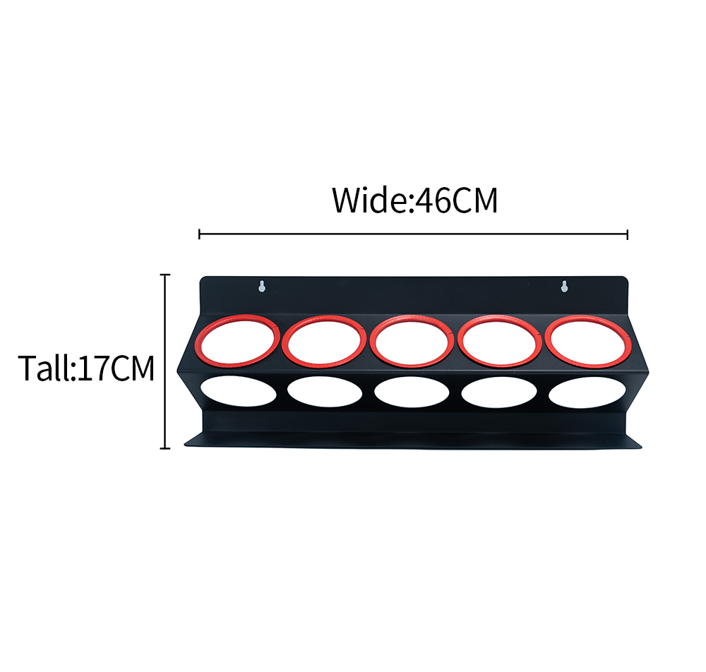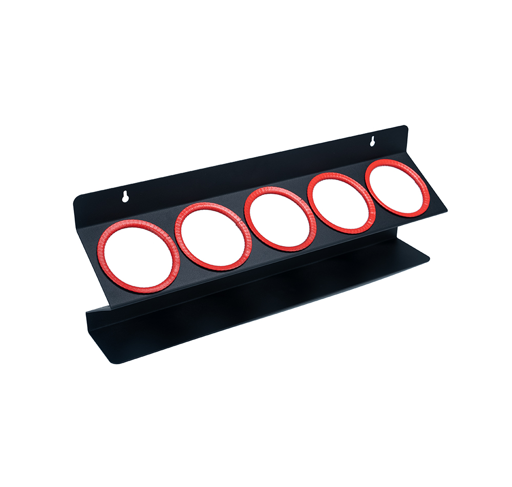 5 孔壁挂式设计,喷壶 / 研磨剂瓶一站式收纳 红色防撞胶圈,保护瓶身不刮花,放置更稳固 加厚金属材质,坚固耐用,承重性强 节省空间,让汽修 / 美容车间整洁有序 安装便捷,预打孔设计,上墙即装即用